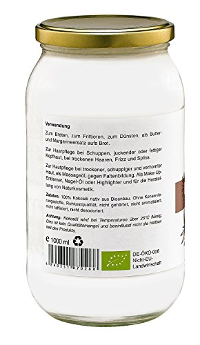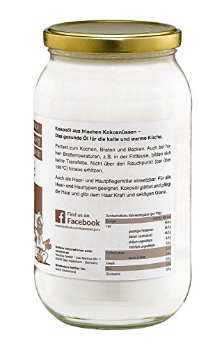 Kokosöl ist gesund und es werden ihm antivirale, antibakterielle Eigenschaften nachgesagt. Zur Herstellung des Öls wird das Fruchtfleisch der Kokosnuss zerkleinert, getrocknet und dann in einer Ölpresse gepresst. Bei guter Kühlung hält das Öl 1-2 Jahre. Verwerndet wird es gerne als Kosmetikprodukt für Haut und Haar, als Brat- oder Fritierfett in der Küche. Selbst in der Tierpflege punktet das Produkt bei Fellpflege und Parasitenbekämpfung.